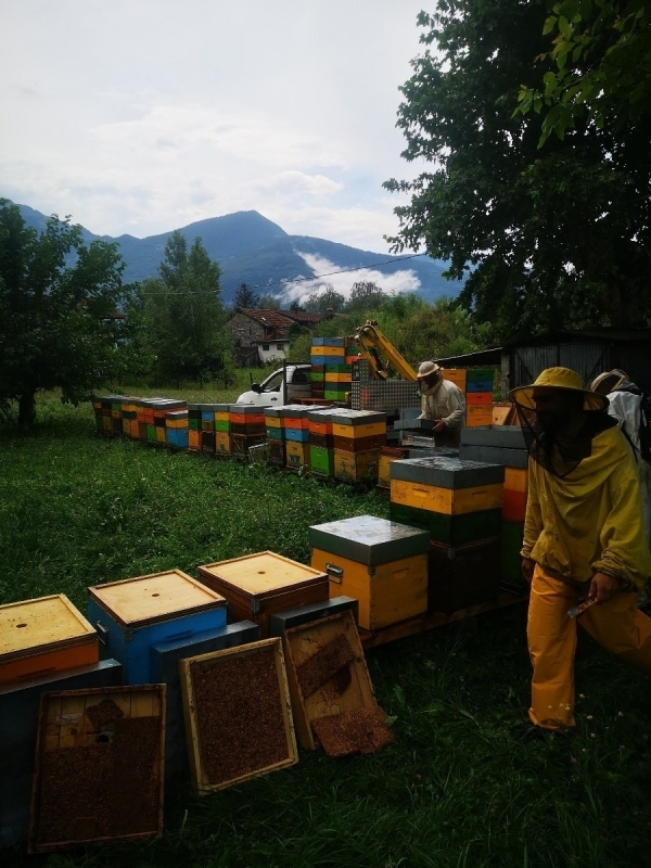 Nous pratiquons le nomadisme dynamique avec environ 800 ruches en production réparties entre la Ligurie, la Toscane et la Lombardie, en plaine et en montagne, pour la production de miel et de pollen biologiques.