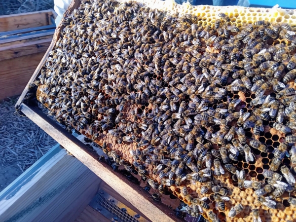 Ruchette Langstroth 5 cadres : 3 couvain, 2 de miel.