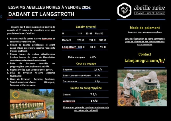 1. Essaims traités contre Varroa destructor et contrôlés avant livraison.