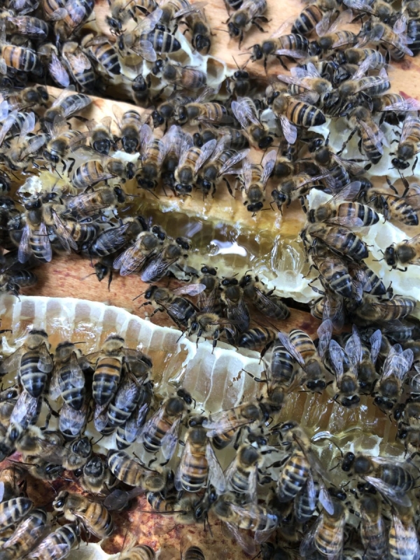 Essaims : 3 à 5 cadres de couvain, 1 à 2 cadres de réserves, 1 à 2 cires gaufrées (cire d'opercules).