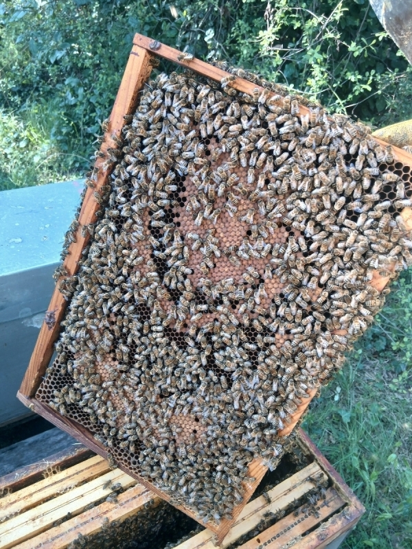 Essaims hivernés sur 6 cadres Dadant issus de nos élevages, 4 couvain. Reines 2025. Possibilité de les enrucher dans la Loire ou dans le Gard.