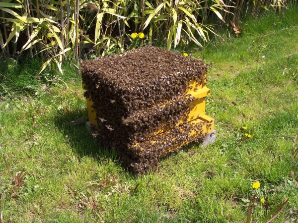 - Essaims par essaimage naturel sur 6 cadres, prêt à être transférer en ruche. 180 €.