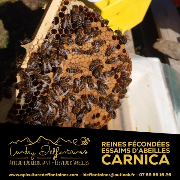 Élevage sur souches F0 issues de sélectionneurs européens spécialisés Carnica. Sélection sur la rusticité, la douceur, la faible tendance à l’essaimage et la productivité. Fécondation dirigée, voie mâle sélectionnée sur l'exploitation.
