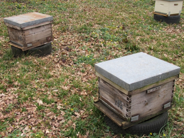 Ruches prêtes pour la saison : dernier traitement effectué en janvier.