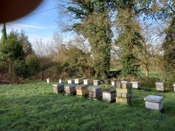 Vends cause départ retraite petite exploitation apicole 140 ruches Dadant peuplées 10 cadres.