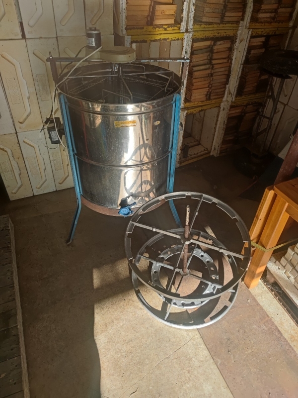 Extracteur Thomas 12 cadres de hausse, avec un panier supplémentaire 4 cadres de corps pour l'extraction tangentielle.