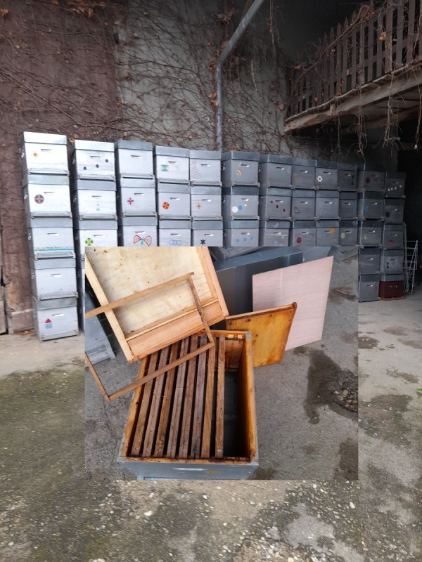 Ruches Dadant 10 cadres : toit tole 105 + couvre-cadre + nourrisseur bois couvre-cadre + corps thermopeint avec poignées + 9 cadres droits filés non cirés + 1 partition + plancher bois grillagé antivarroa + protection entrée.
