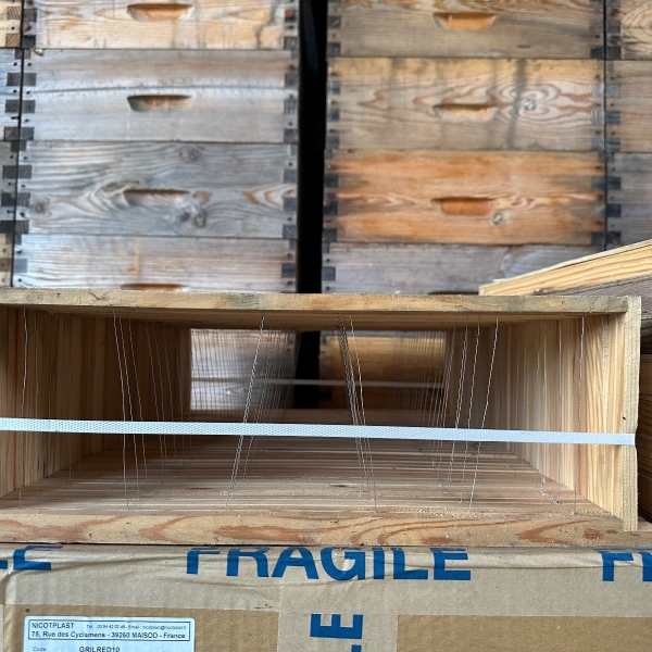 Cadres de hausse (cadres droits, fils verticaux (sans œillet), pour hausses de ruche Dadant). Quantité importante disponible.