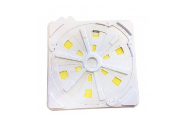 Diffuseurs FAM pour acide formique composé de 3 pièces, un fond contenant un tissu-éponge en viscose servant à emmagasiner l'acide formique liquide, un couvercle et un disque rotatif.