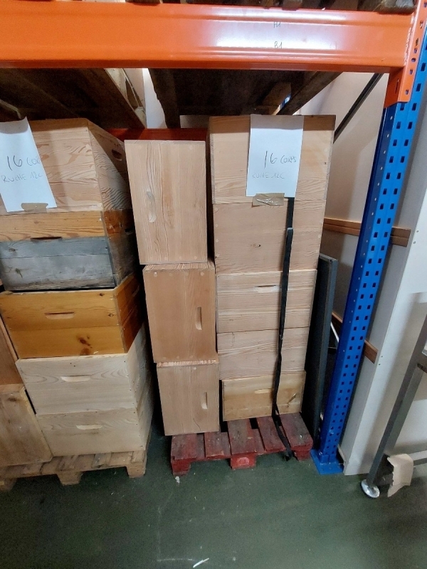 - environ 40 ruches Dadant 12 c (certaines en toit chalet d'autres en toit plat). Certaines sont neuves, d'autres ont été utilisées mais sont en très bon état. Fond + portière + corps + couvre-cadre + grille à reine + hausse + isolant + toit.