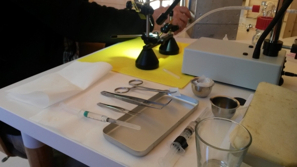 Poste d'insémination complet, opérationnel dès la prochaine saison, bino avec éclairage LED, statif type Loc complet, bouteille CO2+détendeur+bulleur+robinet de réglage fin, seringue Schley+capillaire, seringue Harbo+pipettes 50µl, divers accessoires de préparation stérile ou de nettoyage des pointes, caisse Alu de rangement, boites de capture et conservation des mâles avec compartiment abeilles et candi.