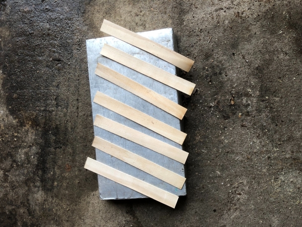 Environ 1500 lanières en bois. 38 mm x 300mm x 2mm.
