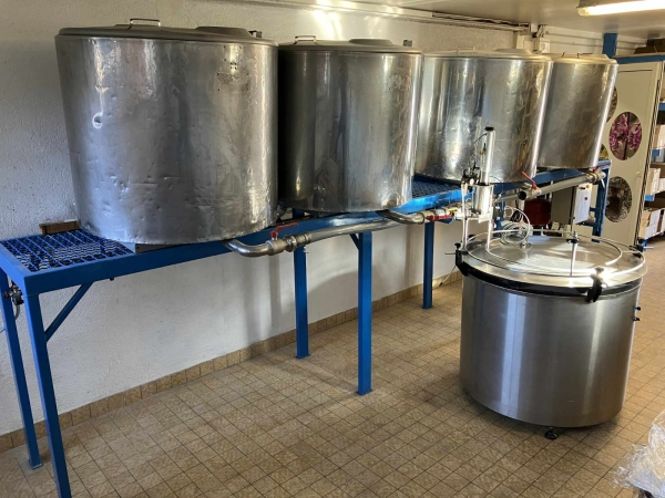 4 tanks de 600 kg en inox chauffés par un circuit électrique d'eau chaude fonctionnant en triphasé.
