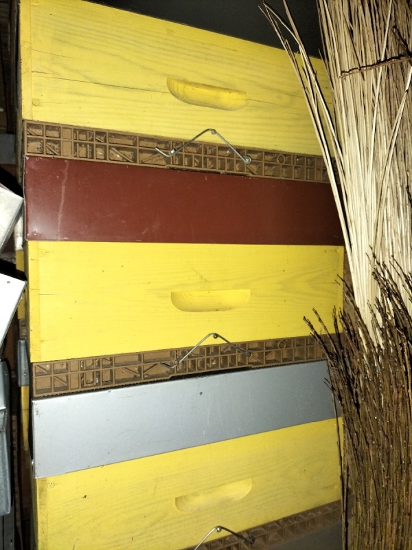 Lot de 10 Dadant 10 c divisibles, toit tôle, plancher Nicot, nourrisseur bois.