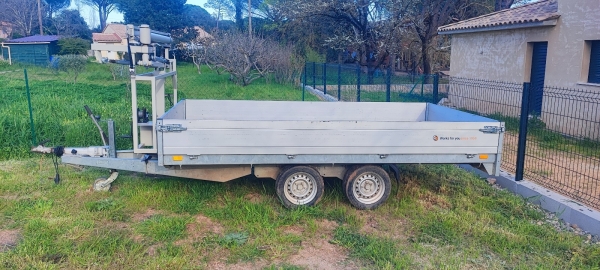 Vends remorque plateau ridelle Saris 2 500 kg (3 500 kg déclassé).