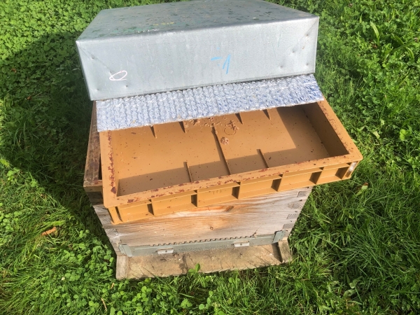 Ruche Dadant 10 cadres, avec plancher en bois ou en plastique, porte d’entrée réversible, corps à tenons pour 10 cadres droits, nourrisseur Nicot, isobulle et toit galvanisé 105.
