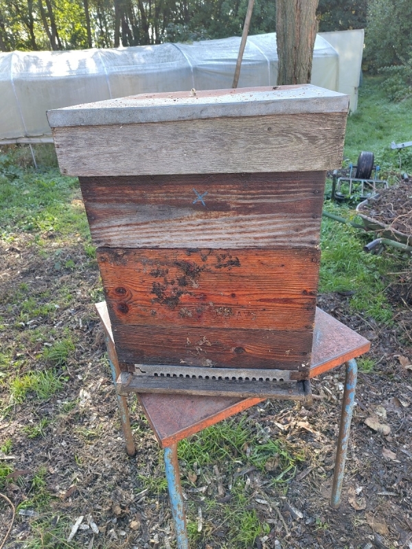 Il y a aussi 40 ruchettes 5 c avec nourrisseur couvre-cadre et toit bois tôlé.