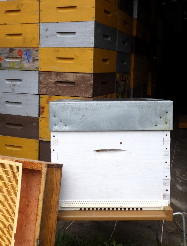 Ruches complètes (fond plastique + porte plastique réversible blanche + corps Dadant 10 c + 10 cadres non cirés + nourrisseur (bois ou plastique) + toit en galva + grille à reine + 1 hausse + 9 cadres hausse)