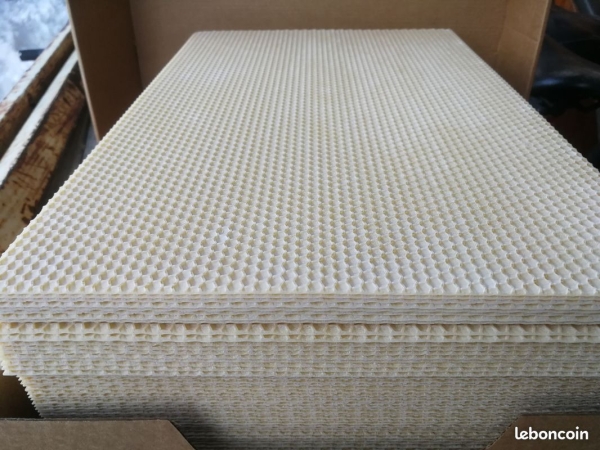 Suite à cessation d'activité, je vends plusieurs dizaines de kg de cire d'opercules, gaufrée chez Remuaux, certifiée AB, certificat Ecocert disponible.