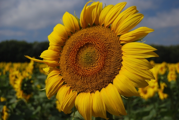 Châtaignier des Cévennes bien foncé et tournesol du Lauragais.