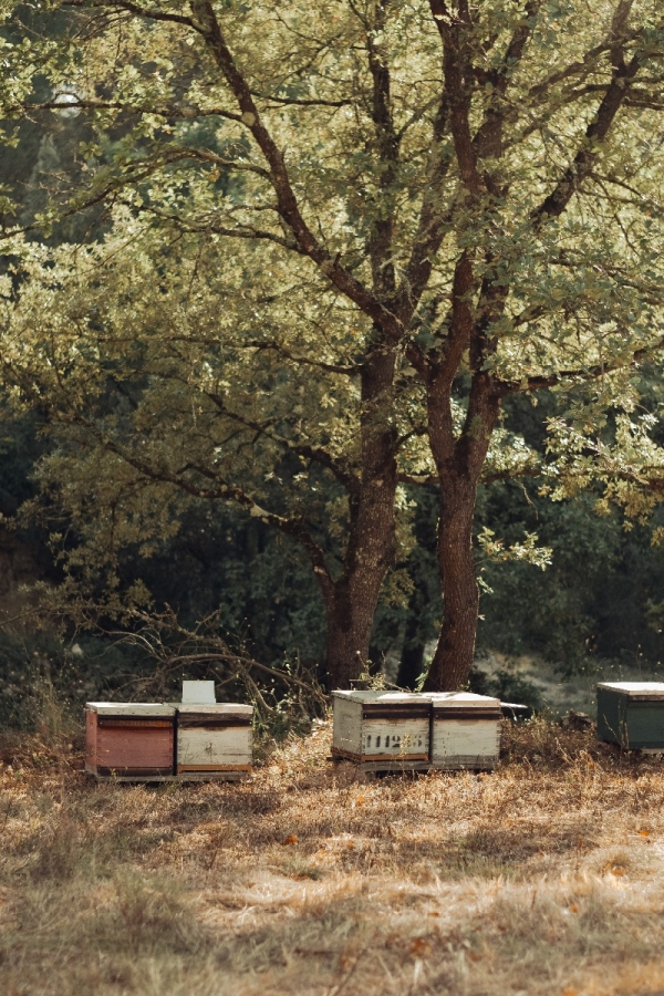 Plusieurs fûts de miel de châtaignier, récolte 2025, produit dans l'Aude (Montagne Noire), humidité 17%.