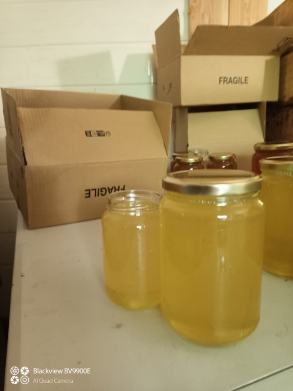Vends également 1 seau de 40 kg de miel de tilleul, 8 €/kg.
