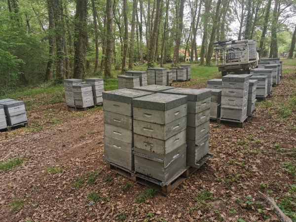 Vends Ruches peuplées Dadant 10 cadres droits Fabrication Montagne noire en 2 lots de 40 ruches.