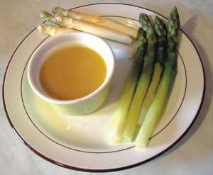Servir sur un plat chaud , la sauce aux pommes à part.