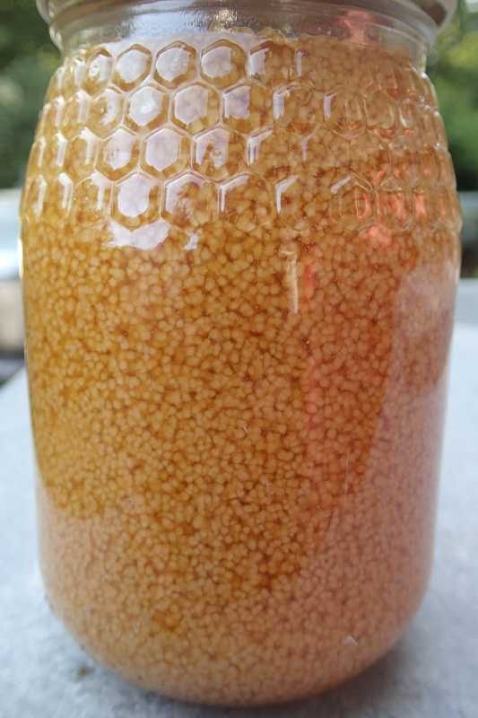 2. J'ai eu ce problème (photo) uniquement sur ma récolte de fin juillet avec du miel de forêt à 100%. Mes deux autres extractions, soit 100% miel de printemps et un mélange de printemps/forêts (deux emplacements) ont cristallisé de manière impeccable.