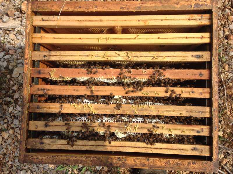 donc tu la met entre ton pouce et ton index et tu appuis fortement tu place les qq abeilles qui reste dans une ruche plus forte car mettre du couvain sans abeilles pour le garder au chaud il va crever donc pas top