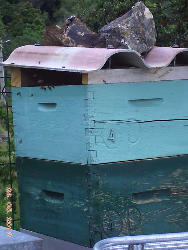 L'année dernière, pas de produit mais alcoolat maison de propolis dans deux vielles caisses agrémentées de cires neuves placées directement dans rucher: 2 essaims de plus, et pas de chez moi!