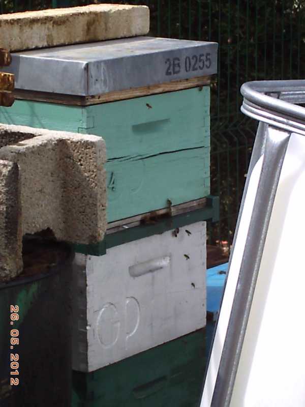 2012 a été une année à essaims par chez nous (oh, pas des très gros!) et les 10 ruchettes dans lesquelles j'avais installé une pipette de swarm catch (avec 1 ou 2 vieux cadres) ont toutes les 10 "attrapé" un essaim. Même dans les ruchettes neuves.