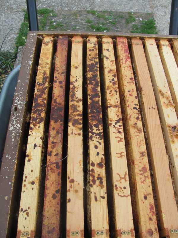 Ci-joint la photo d'une ruche morte cette hiver. La population était trop faible, et elle est morte alors que les cadres sont pleins de miel (maisaps de pollen).