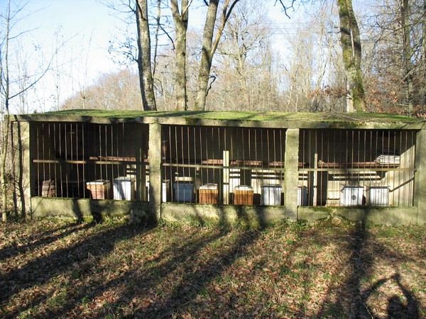 J'ai récupéré un ancien rucher "couvert", il est fermé par un mur sur 3 cotés: les 2 cotés + le derrière des ruches. Tout le devant est constitué de barreaux (comme une prison), et je vois bien que ça gène les abeilles, et que les plus chargées et vieilles y laissent quelquefois vite la vie!