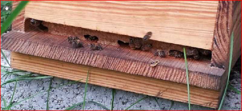 La grille laisserait plus d'espace à l'entrée de la ruchette par rapport à ce "rempart" de propolis, vraiment là, je ne vois pas!Et si tu essayais de mettre une grille d'entrée ?