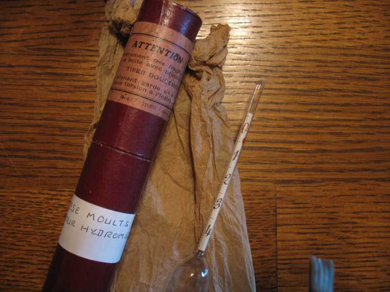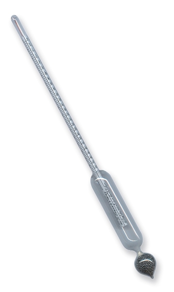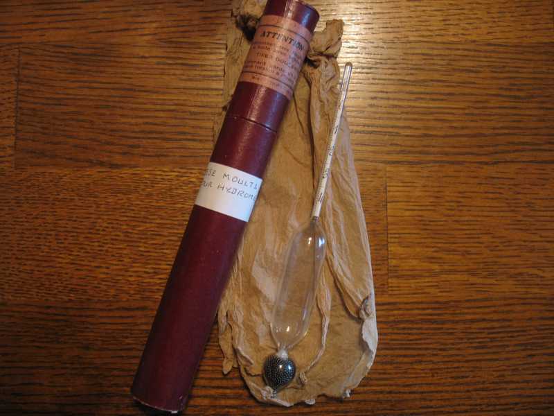 Pèse hydromel : pèse la densité du mélange eau-alcool après fermentation ( normalement plus léger que l'eau, du gaz carbonique a quitté le moult. )