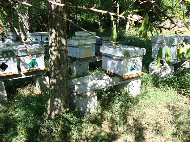 les ruches sont a une bonne 40aine de cm du sol et j en ai encore sur support que je me suis fabriqué de 25 cm de haut mais comme disent les jeunes Y A PAS PHOTO. a+