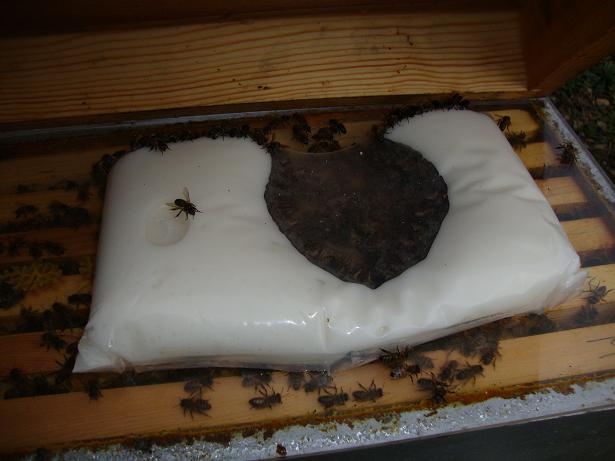 Au début, moi aussi j'ai suivi ces "conseils" à la c.., de mettre le candi sur les têtes de cadres, perso, quand j'ouvre mes colonies, elles sont plutôt populeuses, et je ne comprends pas comment évacuer toutes les abeilles qui recouvrent toutes les têtes de cadres, à moins d'enfumer comme un malade? de plus, en cas de besoin de re nourrir en cours d'hiver il faut ouvrir entièrement le dessus de la ruche et décoller le sachet vide, c'est plutôt dérangeant pour les abeilles. Autre inconvénient rencontré sur des 5 cadres, avec des reines du mois d’août hivernés, démarrage plein pot au printemps construction dans le nourrisseur à l'envers, et là, bonjour pour récupérer la reine au milieu du couvain dans le nourrisseur (j'ai des photos)?