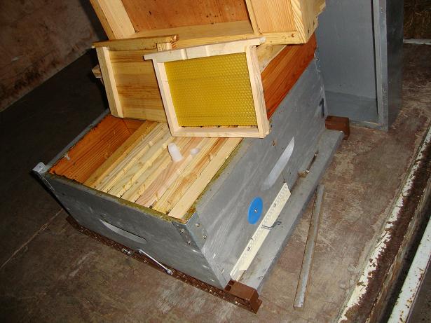 La "hausse" peut être réinstallée sur une ruche, pour construire les cadres au printemps par exemple.