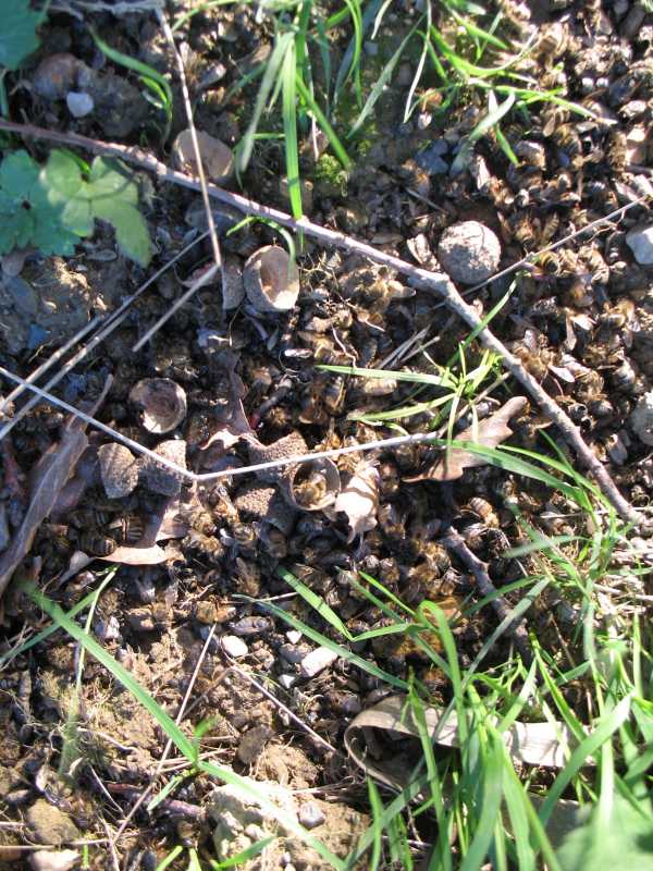 Avec mes petites connaissances de l'époque je m'étais dis que c'était peut être les abeilles d'été qui étaient mortes devant la ruche.