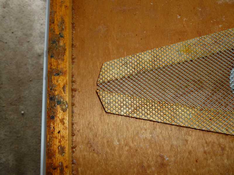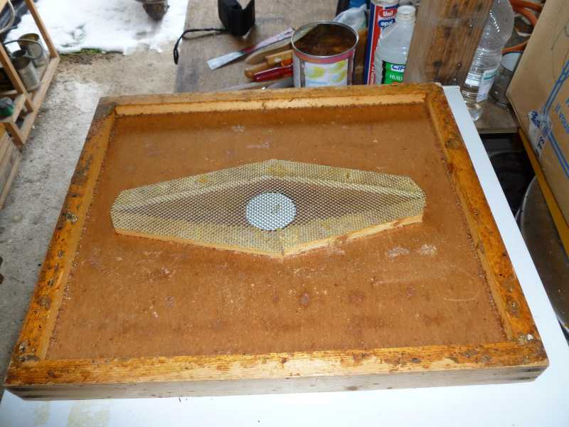 J'ai débuté avec des chasses-abeilles de forme losange en plastique que j'ai remplacé par des losanges de ma fabrication en grillage de fond de ruche