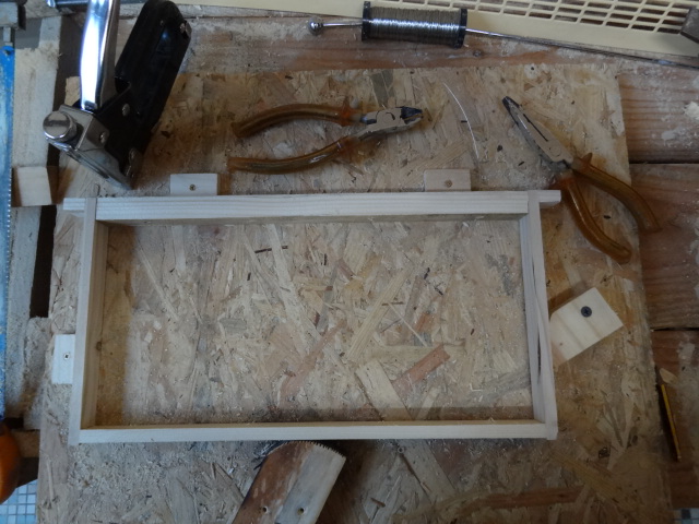 En photo, j'ai mis le dispositif fabriqué tant pour tenir le cadre que pour arquer un peu la bas de cadre.
