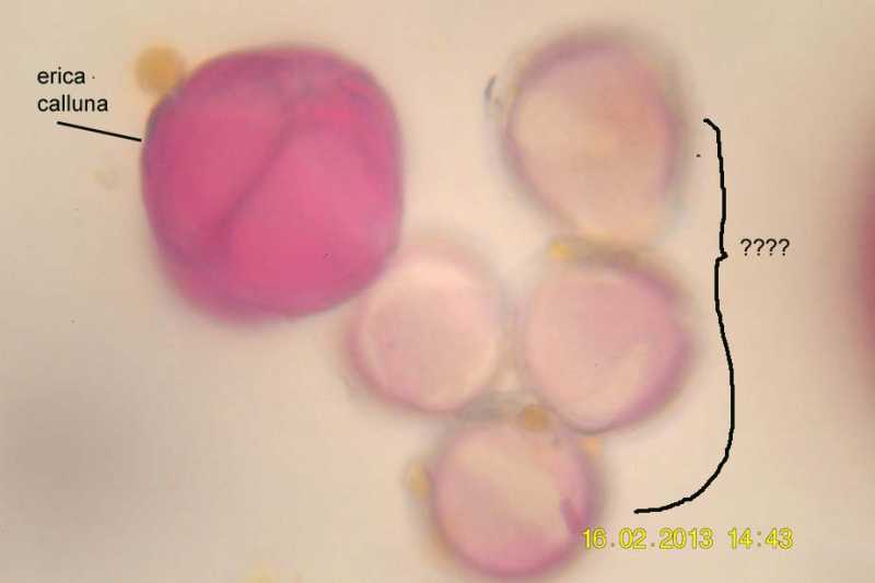 L'analyse microscopique donne pollen d'un type de prunus : à priori Prunus Subirtela (cerisier du Japon qui fleuri en tout début fevrier-mars très précoce)