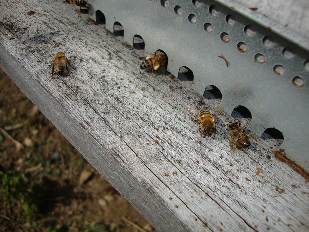 toutes les ruches rentrent du pollen de noisetier. j'ai ouvert la ruche la plus faible pour lui mettre 500g de candi. Ca fait plaisir d'entendre bourdonner de nouveau.