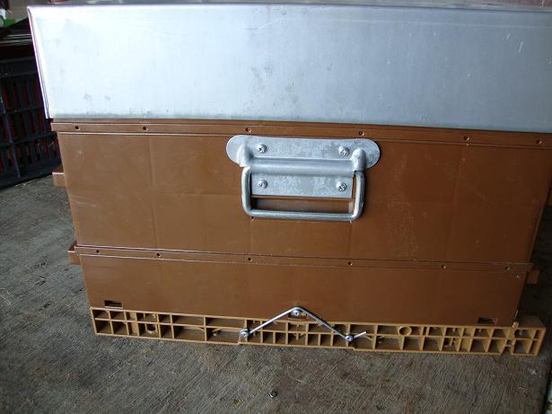 Trappe à pollen que je cherche à adapter aux Nicot, il y a une rainure en façade de la ruche qui gêne, (j'ai pas encore eu le temps de m'y pencher).