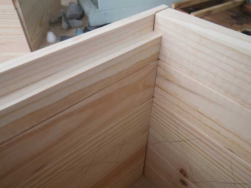 Mais j'en ferai pas des ruches, déjà parce que j'aurai peur de déplacer les ruches pleines (j'ai collé la rainure et languette centrale, et visser des cornières intérieures).