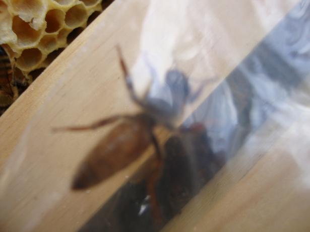 La ruche contenait 2 cadres avec couvain operculé, sans oeuf, ni larves.