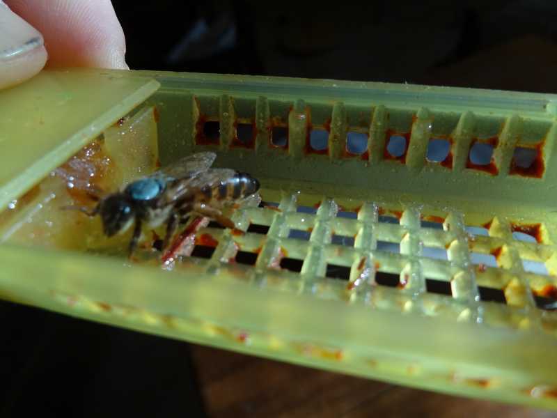 Tu as fini le "vidage" en déchirant la grille? La cage à reine, Nicot? Le nourrisseur bouteille de lait avec un trou dans la partie supérieure, des morceaux de mousse pour éviter les noyades et un bambou très fin pour les faire ressortir par le trou dans la bouteille?