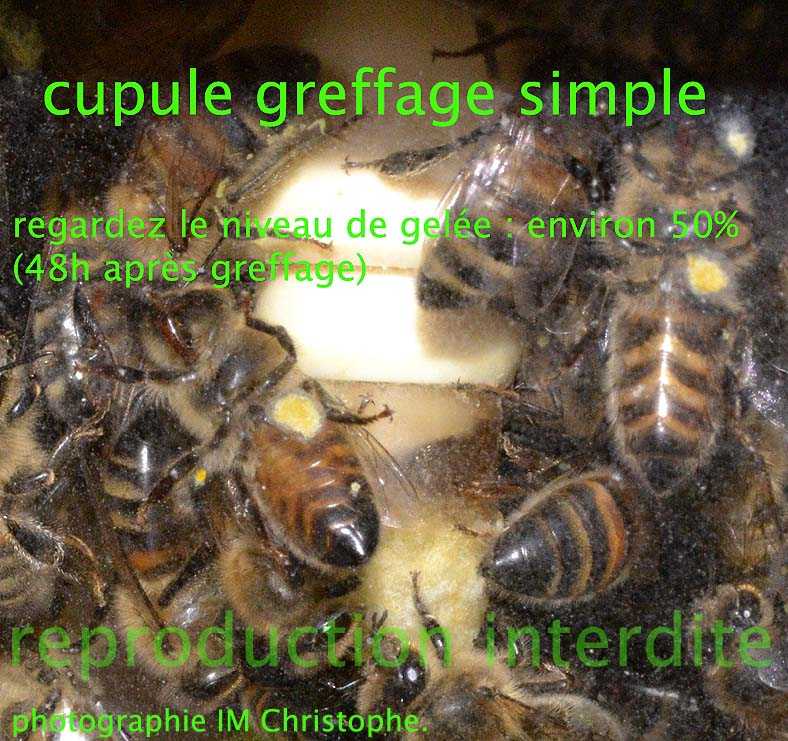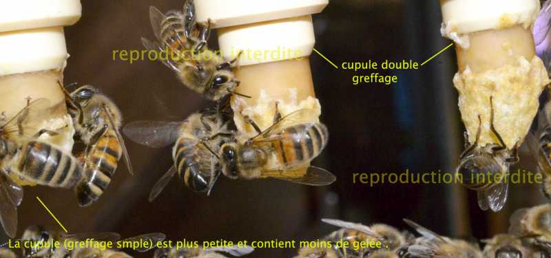 Qu'il y ait plus de gelée royale OK, je fais du simple greffage et mes reines ne consomment pas toute la gelée qu'elles ont reçu des abeilles.