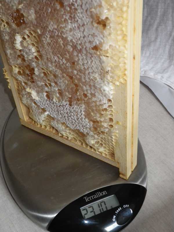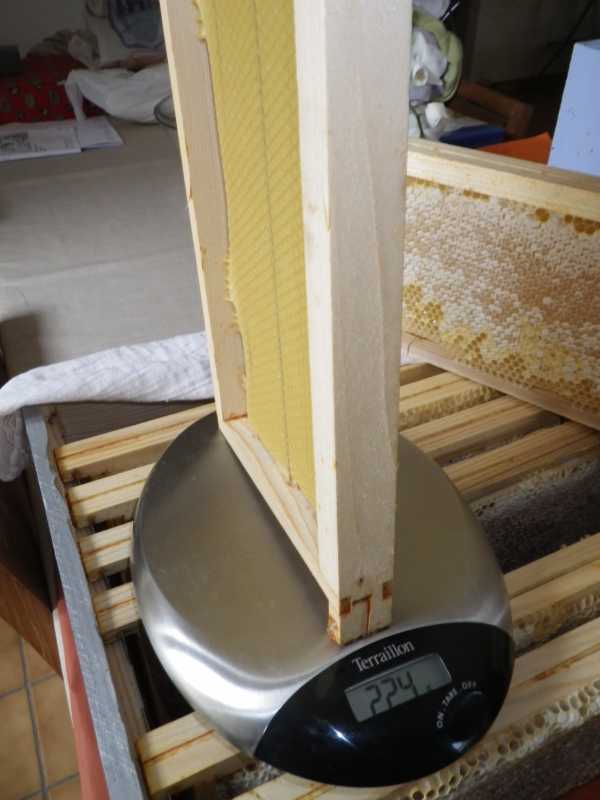 Ce qui veut dire que dans le cas présent, cela fera 200 gr de cire, donc exactement 21 Kg de miel dans la hausse (ce qui est parfaitement estimé).